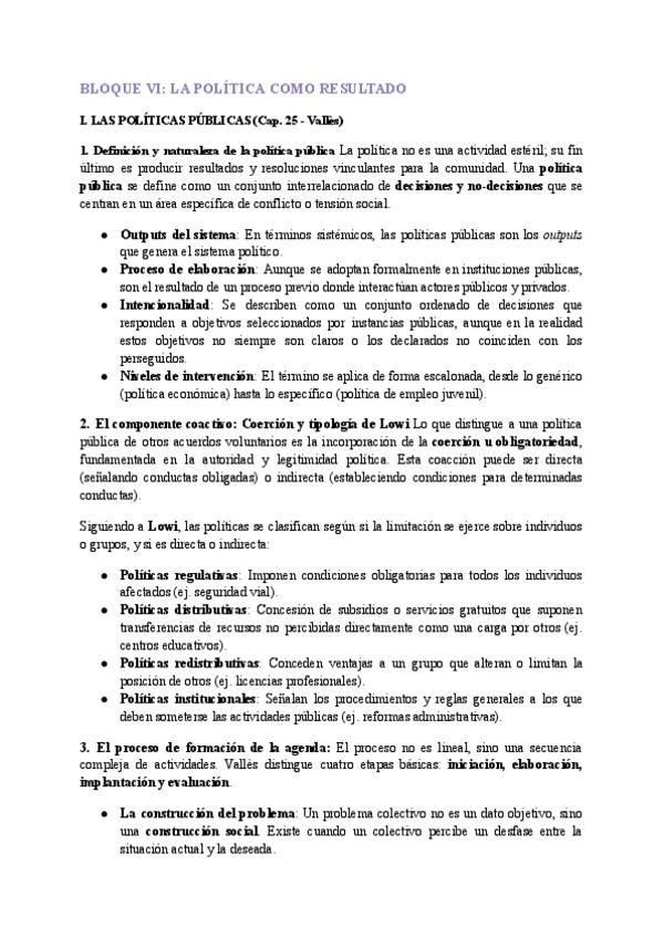 Resumen del bloque 6 de Ciencia Política, con páginas y manuales de referencia