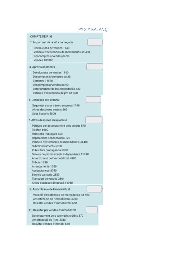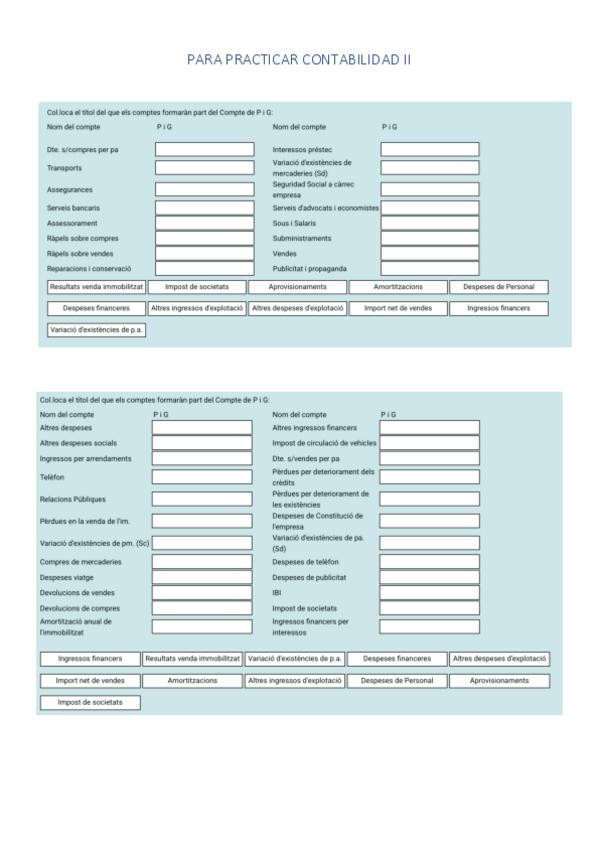 Este documento contiene pyg y balance en blanco para imprimirse y practicar