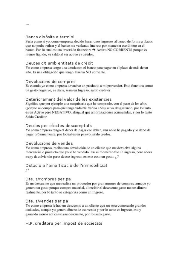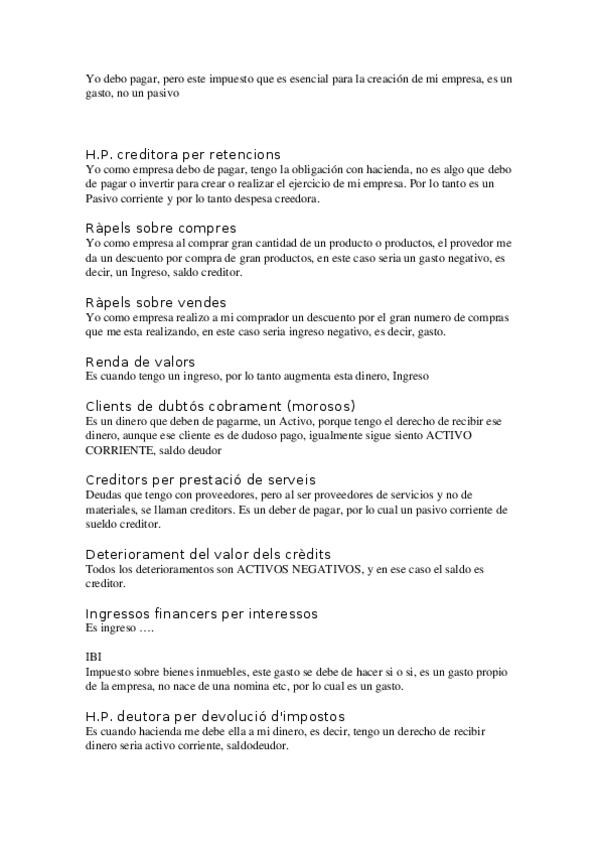 Este documento engloba al primer parcial. la gente que haga unica no le haya falta, pero a los que hacen av. continua puede que si (o no). basicamente, en los primeros ejercicios del curso sobre suposits de balance i pyg, habían conceptos que yo no entend