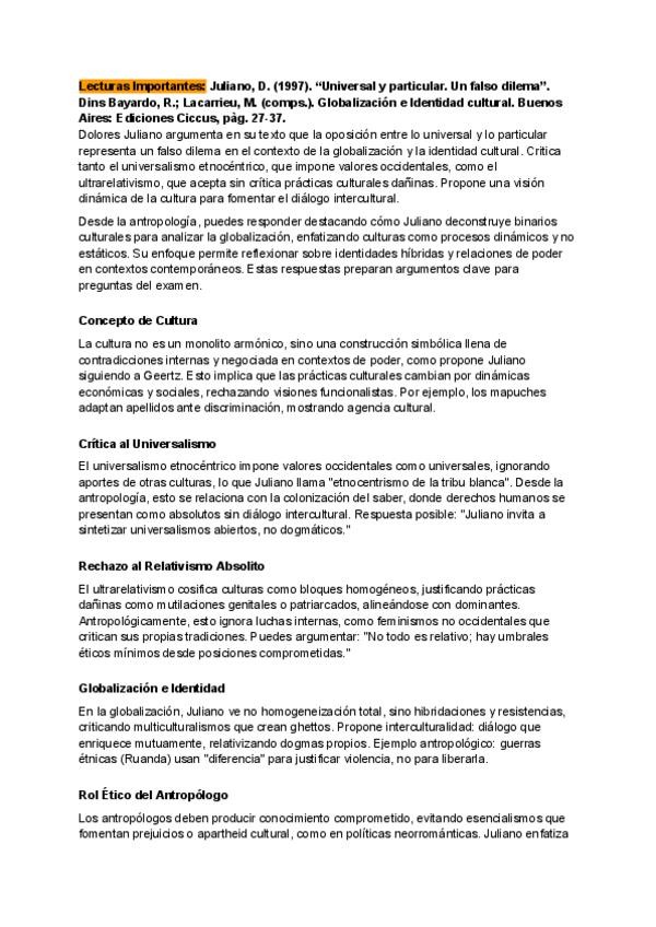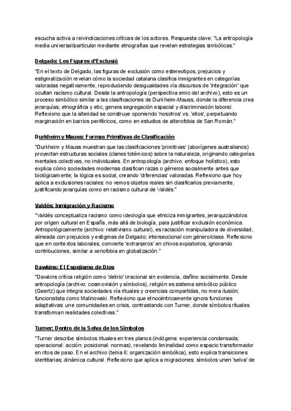 Textos antropologics per a examen segons els deferents temes relacionas amb la teoria.