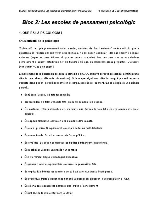BLOC 2. INTRODUCCIÓ A LES ESCOLES DE PENSAMENT PSICOLÒGIC