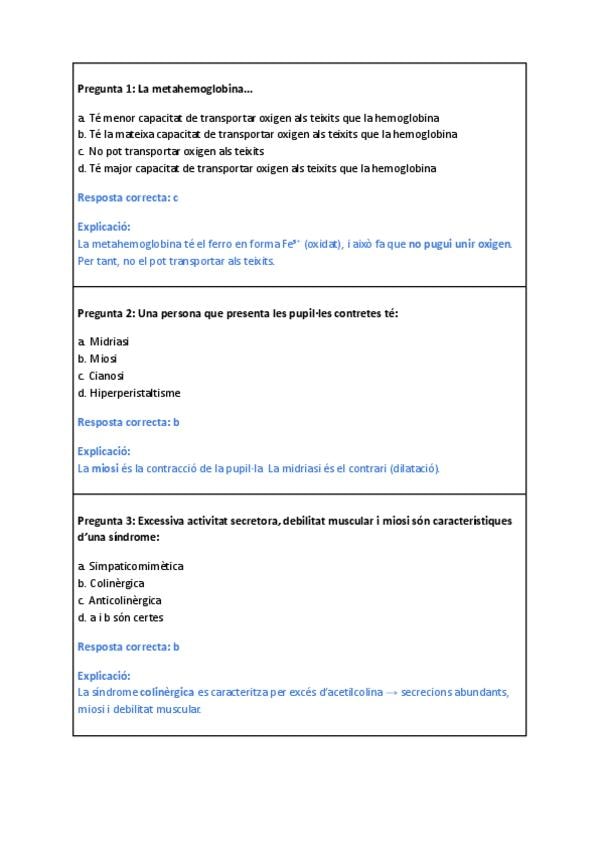 Preguntes curtes d'examen dels casos clínics 1,2 i 3 + test cas clínic 3