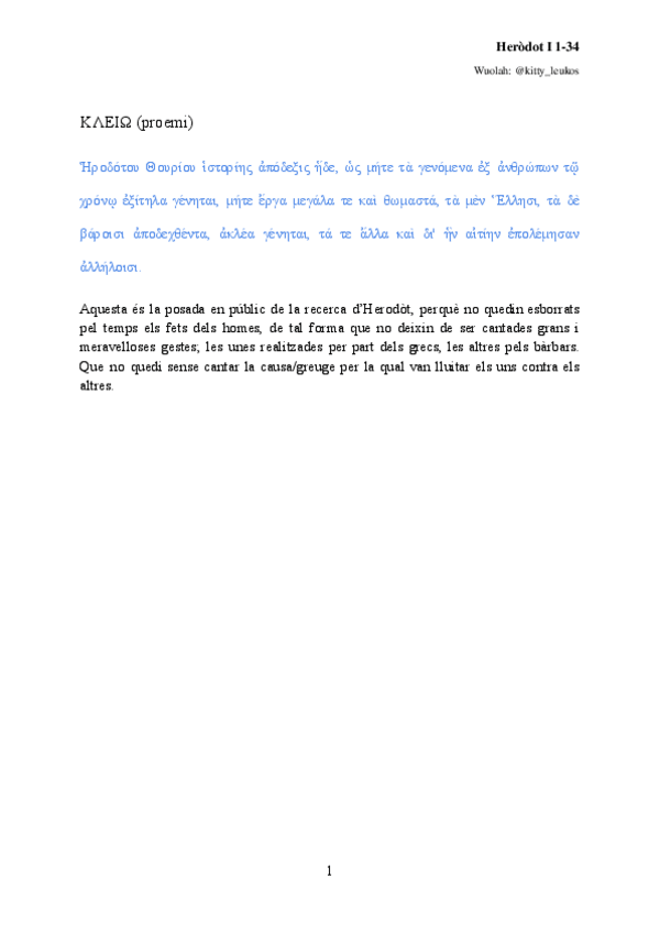 Traducció de les Històries d'Heròdot I, 1-34. Fetes i corregides a classe.
