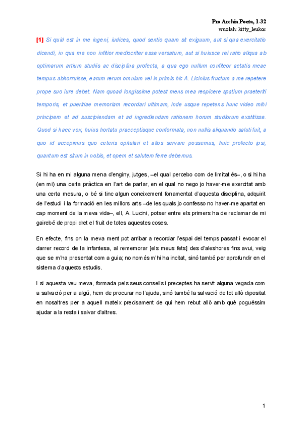 Traducció + text llatí de Pro Archia Poeta de Ciceró (tot el text: 1-32)