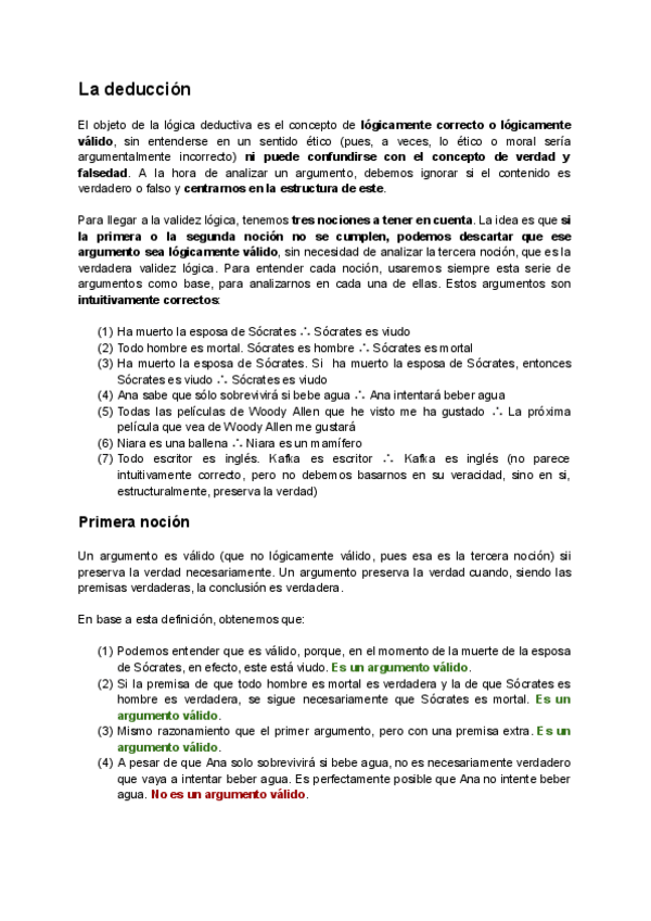 Apuntes sobre la deducción y la noción de argumento lógicamente válido.