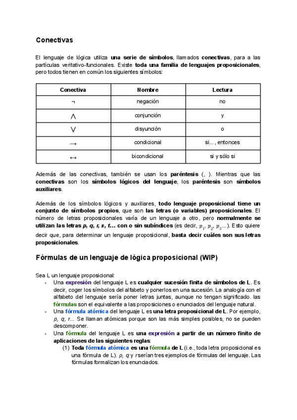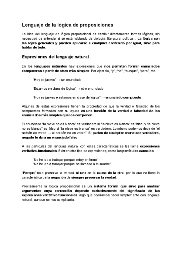Introducción al lenguaje de la lógica de proposiciones, sin ejercicios
