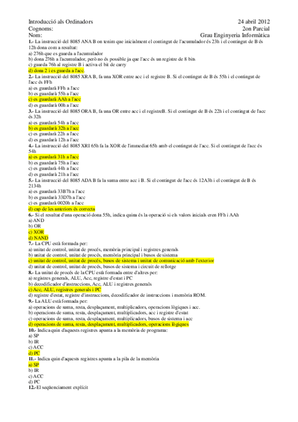 He publicado nuevos examenes de 1º Introducció Als Ordinadors: Examens