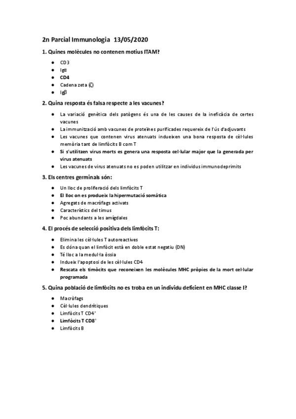 He publicado nuevos examenes de 3º Inmunología: 2n-Parcial-Immunologia.docx.pdf