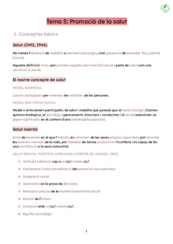 Apunts del tema 5 de societat, salut i benestar del curs 25/26, promoció de la salut.