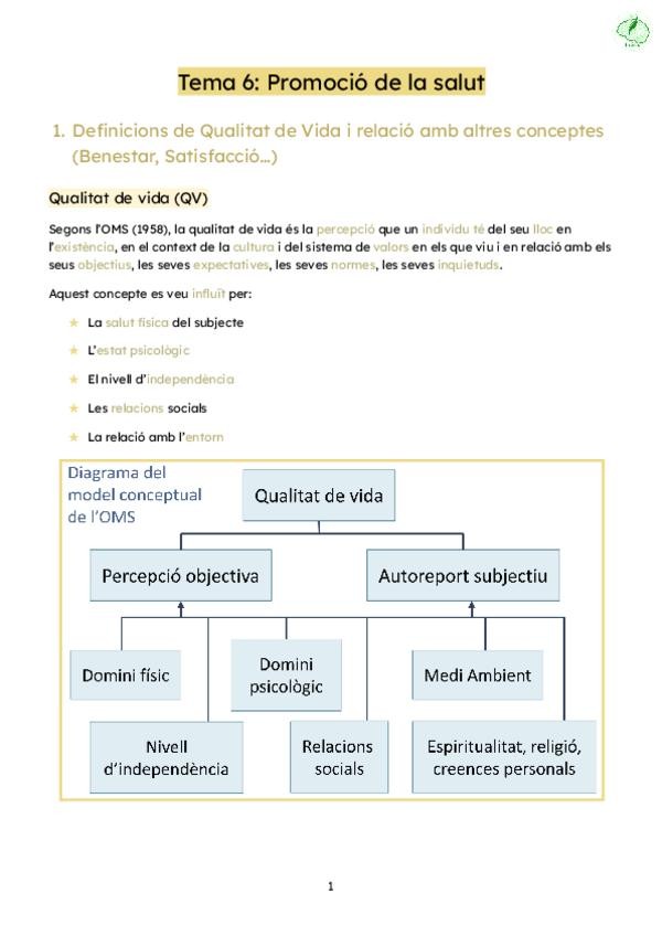 Apunts del tema 6 de societat, salut i benestar del curs 25/26, estils de vida, qualitat de vida i comunitat