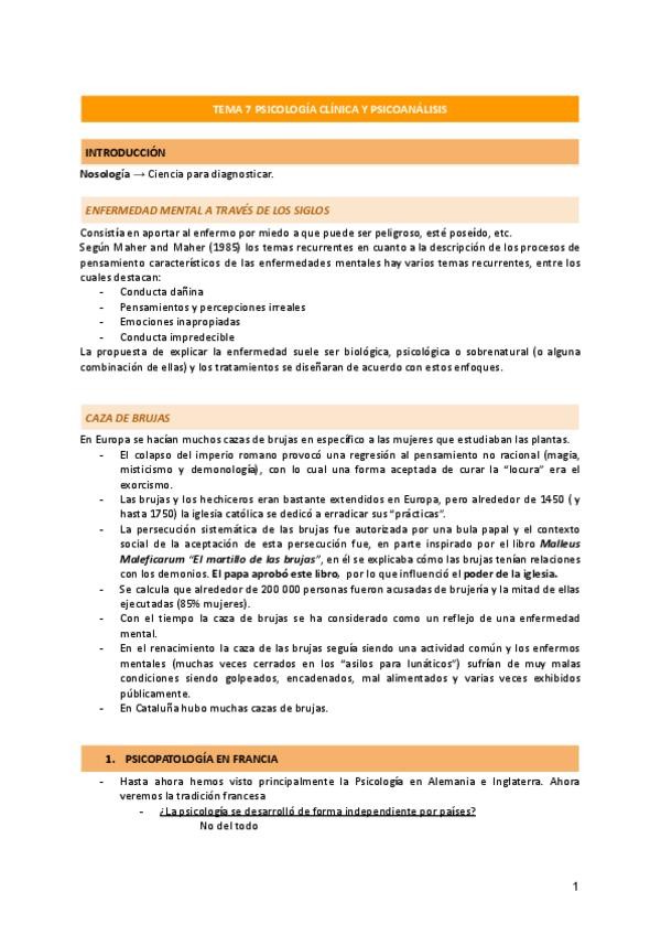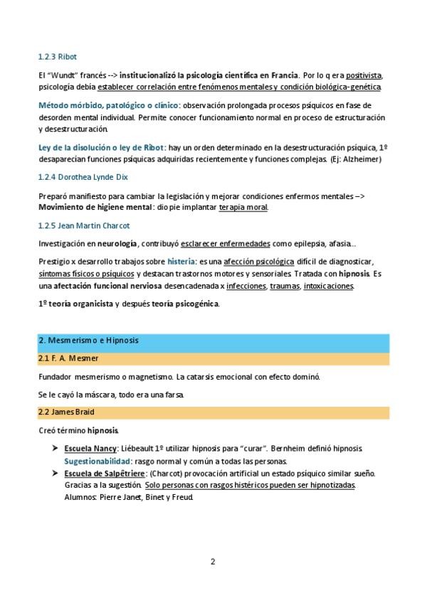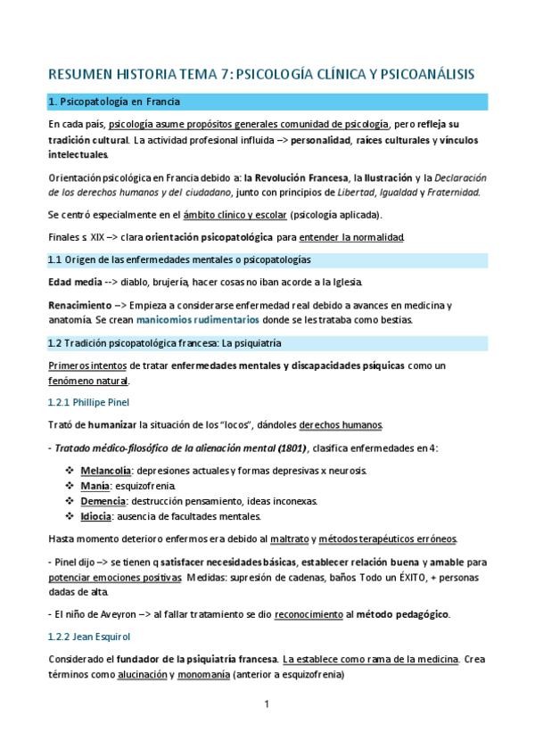 Resumen completo, claro y colorido. Tema 7 de Historia. El psicoanálisis y la psicología clínica.
