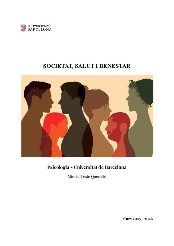 En aquest PDF podeu trobar TOTA la matèria completa de l'assignatura Societat, salut i benestar. Temes 0, 1, 2, 3, 4, 5 i 6.