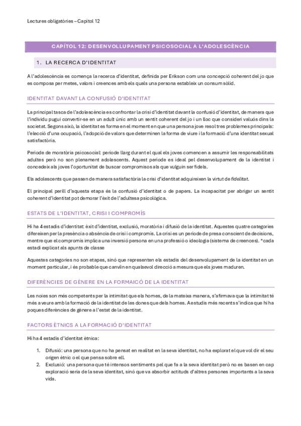He publicado nuevos apuntes de 2º Desenvolupament en l'Adolescencia, Maduresa i Senectut: LECTURES OBLIGATÒRIES ADOLESCÈNCIA (PAPALIA)