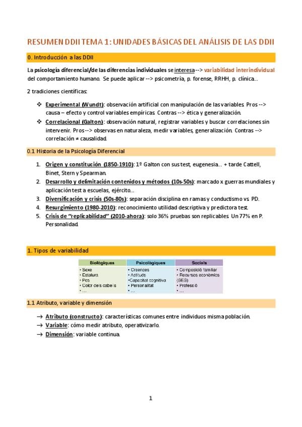 Resumen del tema 0 y 1 de diferencias individuales. Claro, completo y con imágenes.