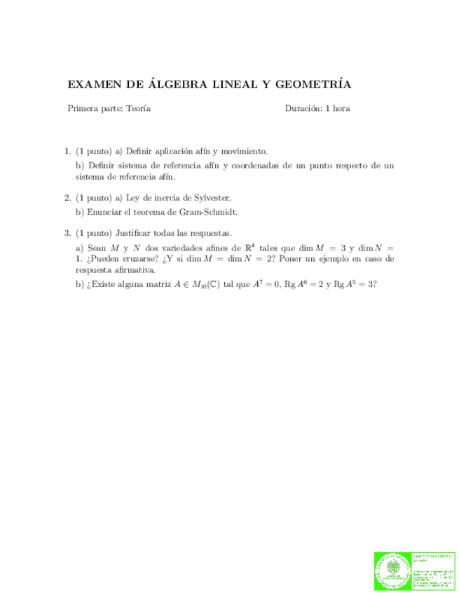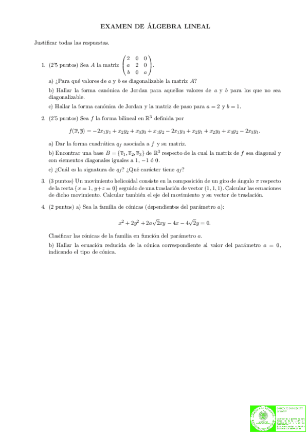 He publicado nuevos examenes de 1º Álgebra: Examenes