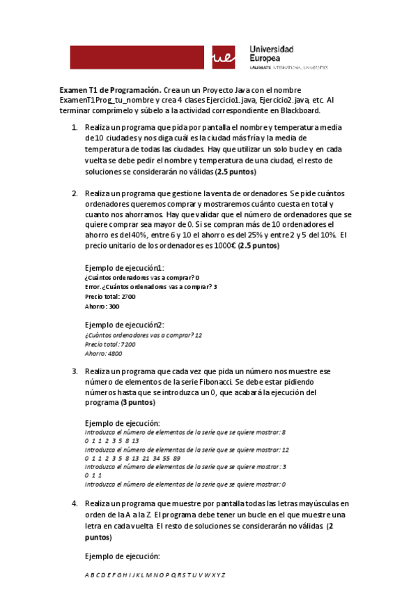 Ejercicios y temario