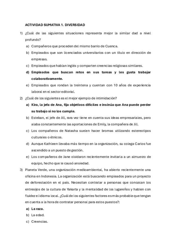 Respuestas actividad sumativa 1 diversidad de comportamiento organizativo