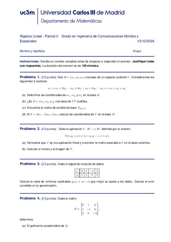 He publicado nuevos examenes de 1º Álgebra Lineal: Final 2024-25 con soluciones.pdf