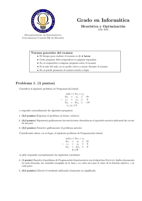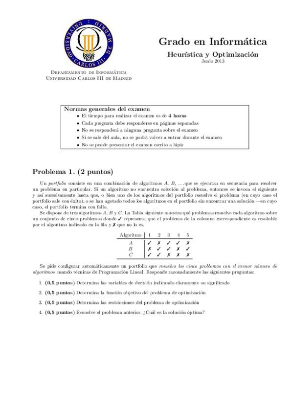 He publicado nuevos examenes de 3º Heuristica y Optimizacion: PROBLEMA 2 - EJS