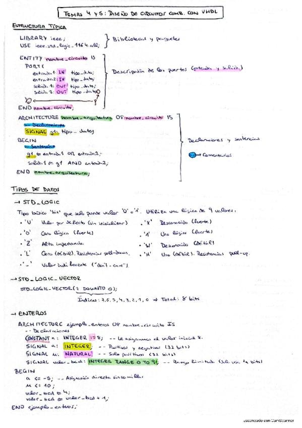 Apuntes temas 4 y 5 de TDC. Diseño de circuitos combinacionales en VHDL.