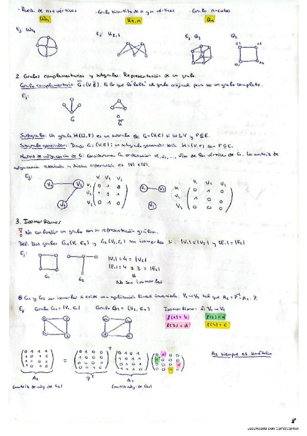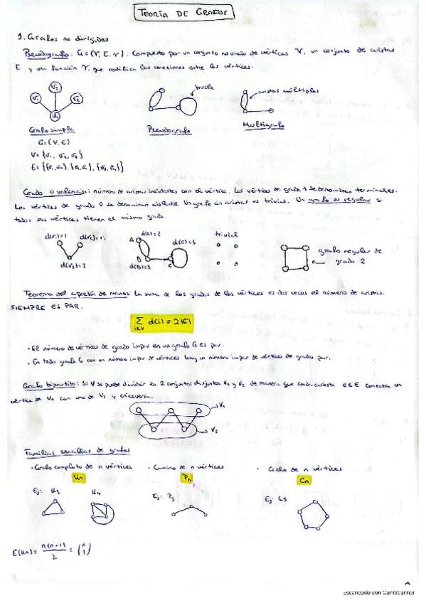 Apuntes Teoría de Grafos I, II, III y IV. Con ejemplos y dibujos para facilitar la comprensión.
