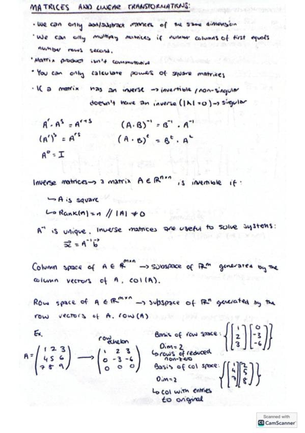 Apuntes Algébra Lineal/ Notes Linear Algebra