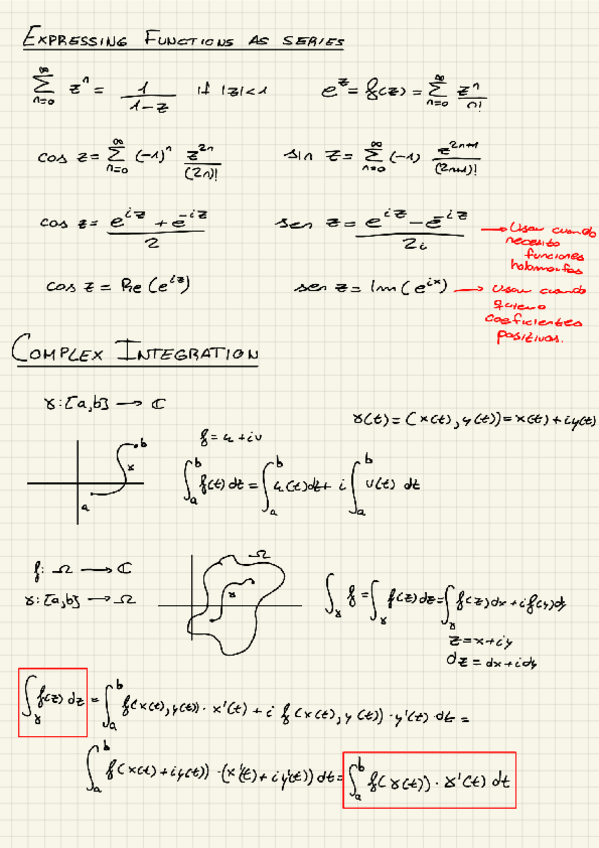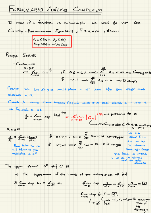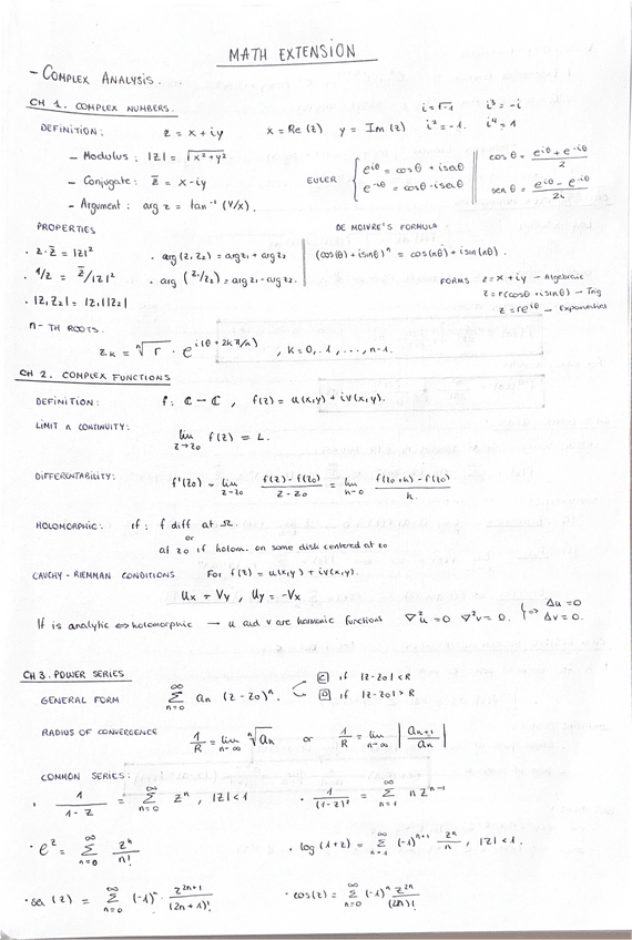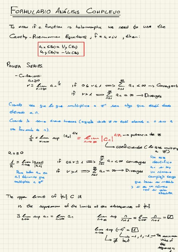 Resumen del 1er Parcial de Ampliación de Matemáticas: 1.- Números Complejos; 2.- Funciones Holomorfas; 3.- Power Series; 4.- Integracion Compleja; 5.- Laurent Series; 6.- Residue Theorem and Applications