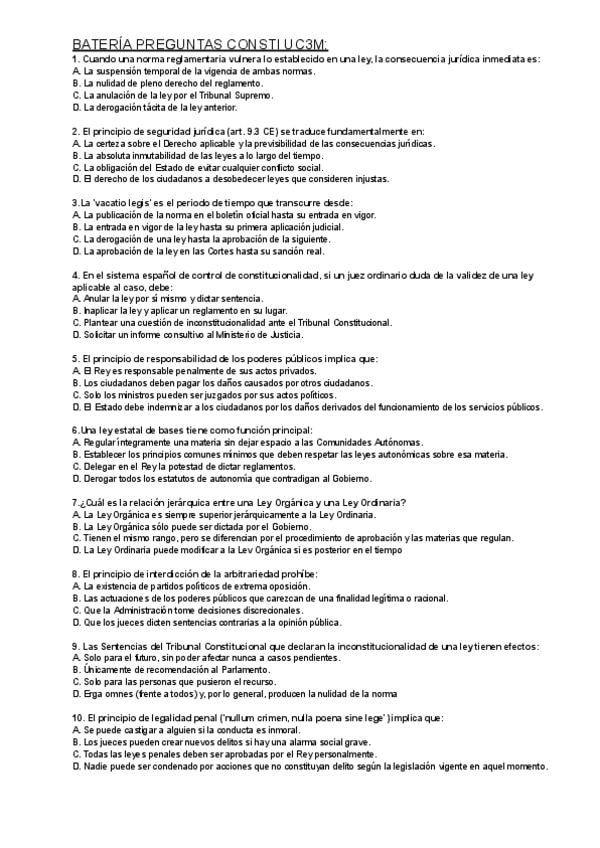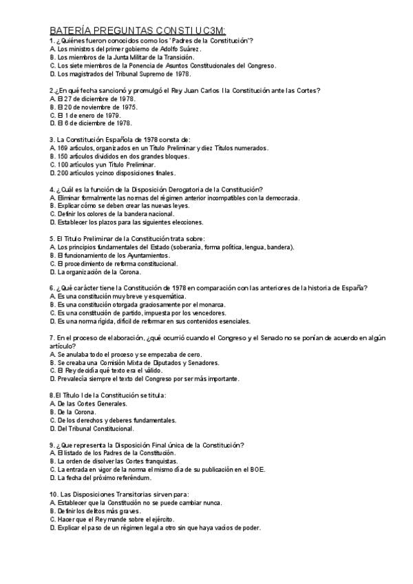 BATERÍA PREGUNTAS CONSTI UC3M - Con y sin respuestas - 2025/2026 - DADE Bilingue