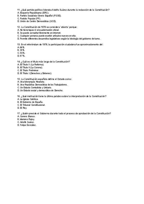 Preguntas tipo test Constitucional tema 1 - UC3M - 2025/26 - Con y sin respuestas