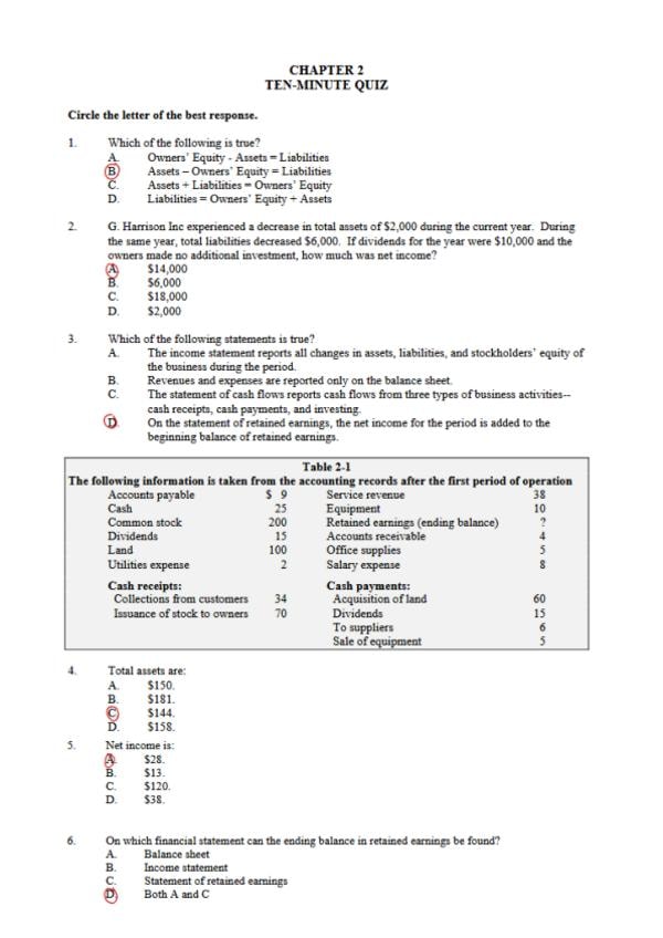 QUIZ CHAPTER (2) - ACCOUNTING INTRODUCTION - UC3M - DADE Bilingue - 2025/2026