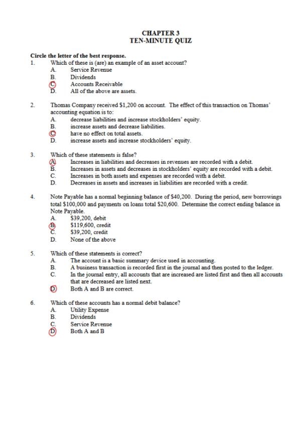 QUIZ CHAPTER (3) - ACCOUNTING INTRODUCTION - UC3M - DADE Bilingue - 2025/2026