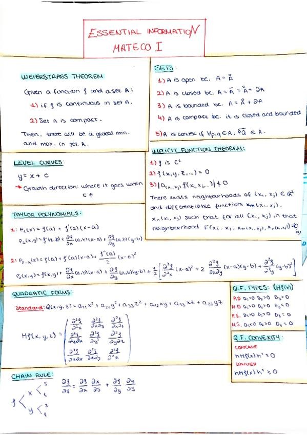 MATHS OF ECONOMY 1 ESSENTIALS FOR FINAL EXAM