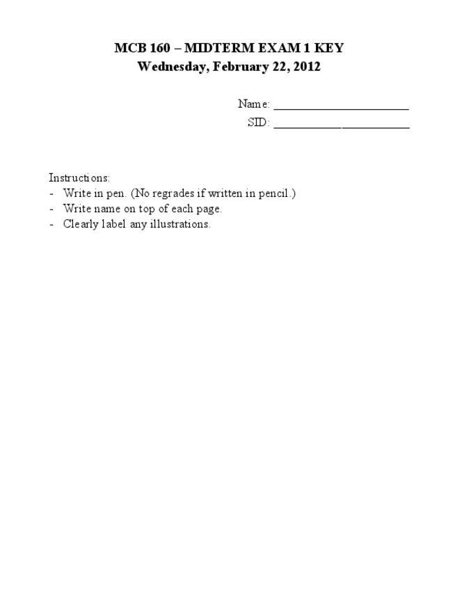 He publicado nuevos examenes de Upper Div Mcellbi 160l - Neurobiology Laboratory: MCB-160-SP2012-Midterm-Exam-1-Key.pdf