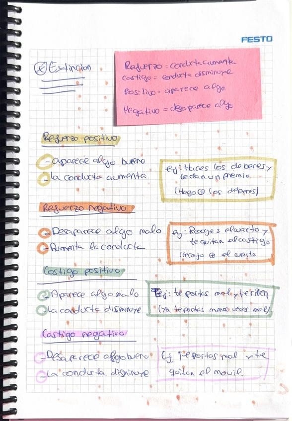 Ejemplos de refuerzo y Castigo positivo y negativo, y una tabla-esquema de las críticas a los diferentes enfoques. tema 1