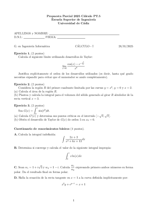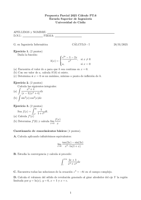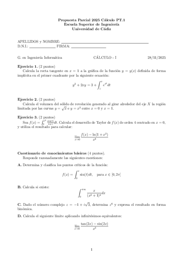 Exámenes PROPUESTA Parcial I Cálculo