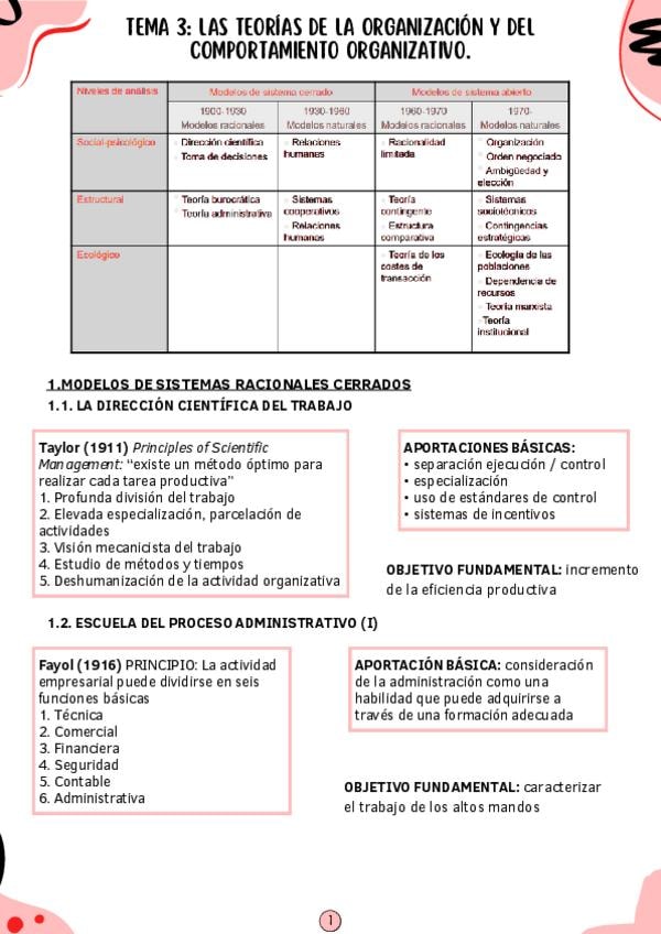 Apuntes del tema 3: Las teorías de la organización y del comportamiento organizativo.
