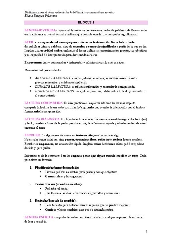 He publicado nuevos apuntes de 3º DIDÁCTICA PARA EL DESARROLLO DE LAS HABILIDADES COMUNICATIVAS ESCRITAS: Apuntes bloques
