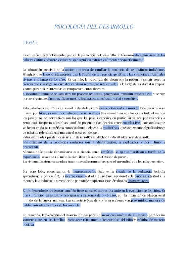 Resumen completo de toda la asignatura de Psicología del Desarrollo.