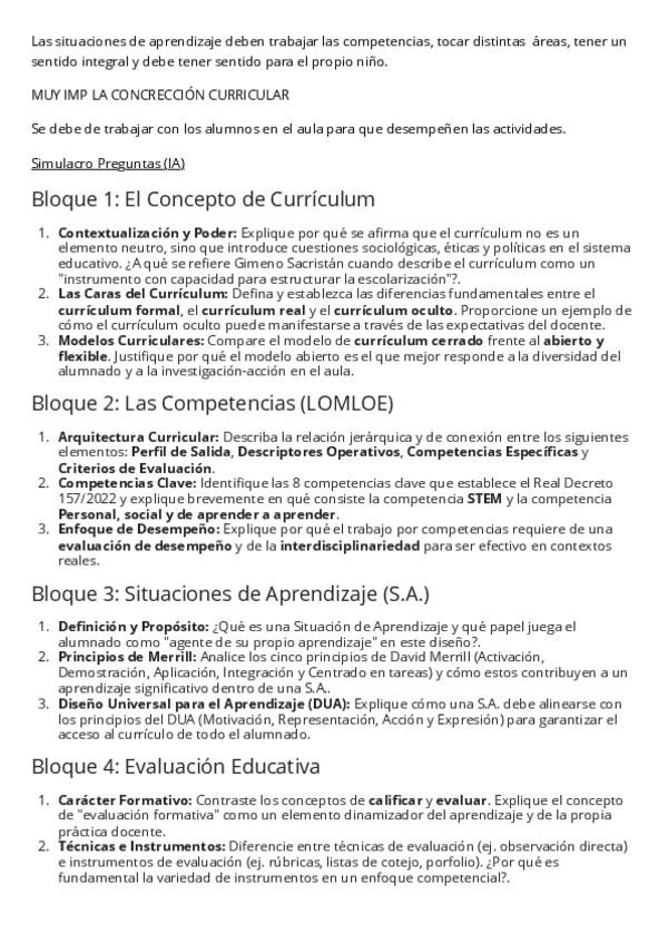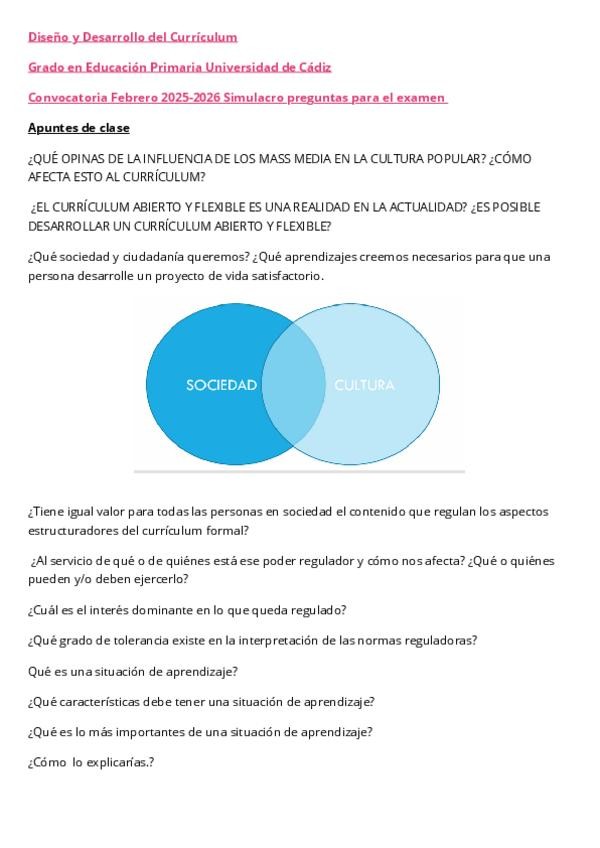 Simulacro de preguntas para el examen anotadas de clase+ IA para la asignatura Diseño y Desarrollo del currículum Curso 2025-2026