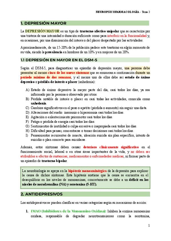 Tema completo y revisado sobre los Antidepresivos. Cuenta con imágenes y explicaciones paso a paso sobre el funcionamiento de los fármacos.