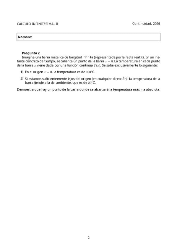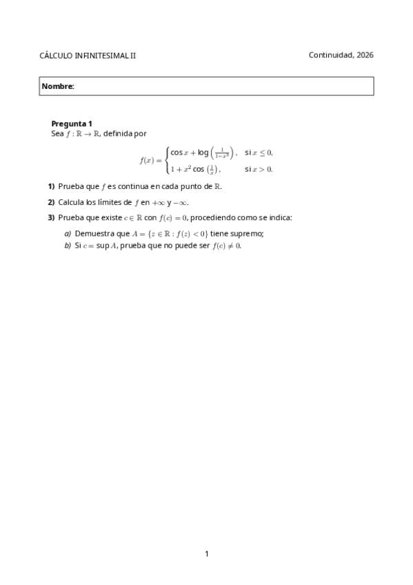 Parcial del tema 1 continuidad de Calculo infinitesimal 2 de 2026