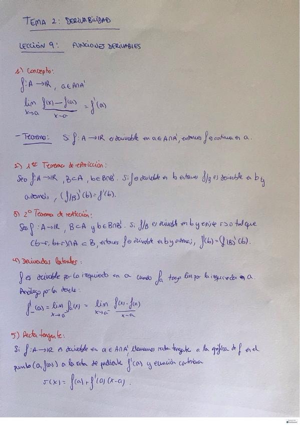 Ejercicios de las lecciones de Derivabilidad. No están todos.