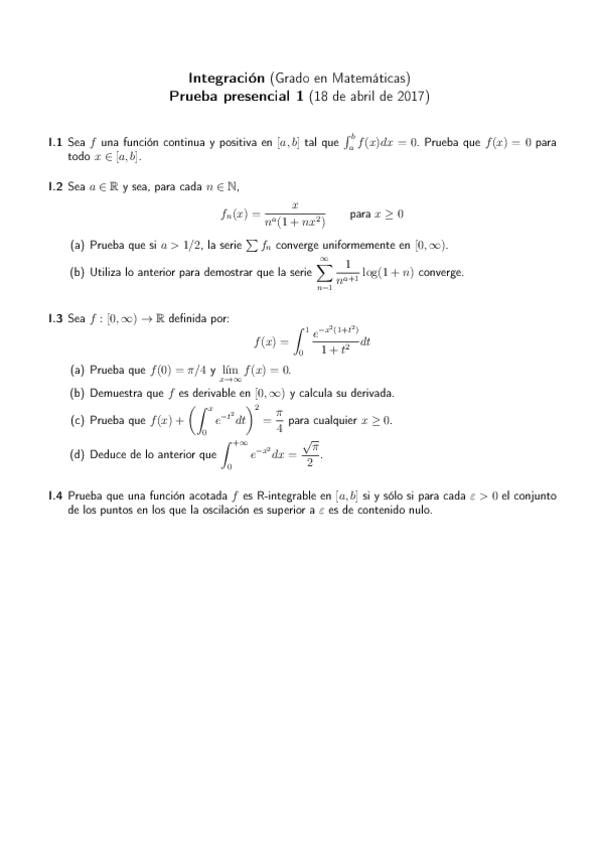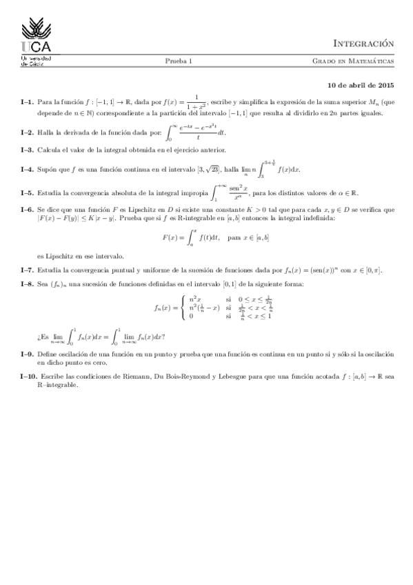 He publicado nuevos examenes de 2º Integración: Primer parcial sin resolver