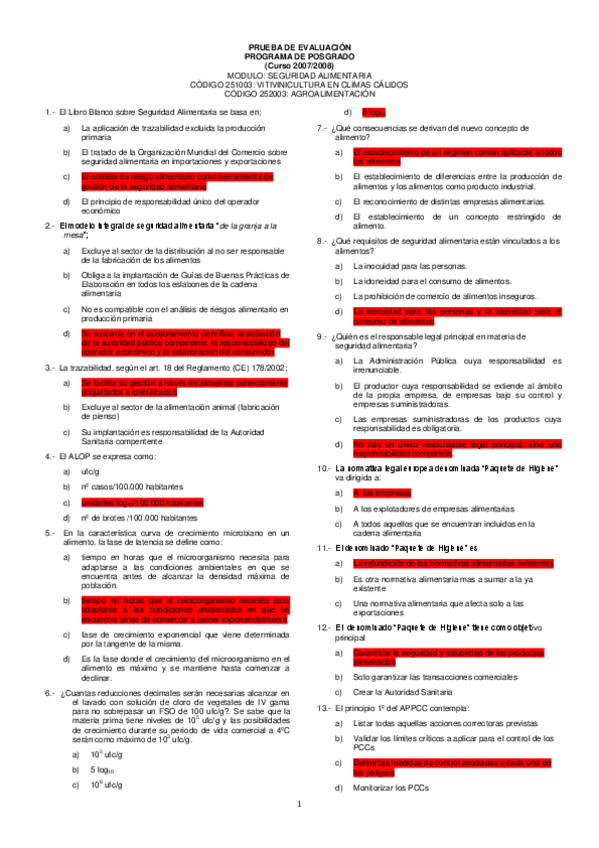 He publicado nuevos examenes de 1º Calidad y Seguridad Alimentaria: Examen-7.pdf
