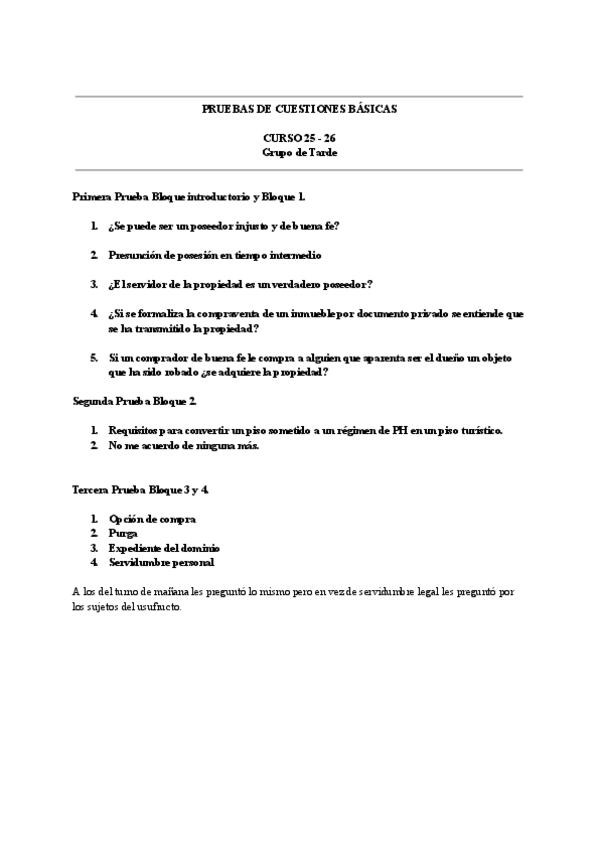Examen final Civil II. Enero 2026 del grupo de mañana y tarde y las preguntas que cayeron en las cuestiones básicas