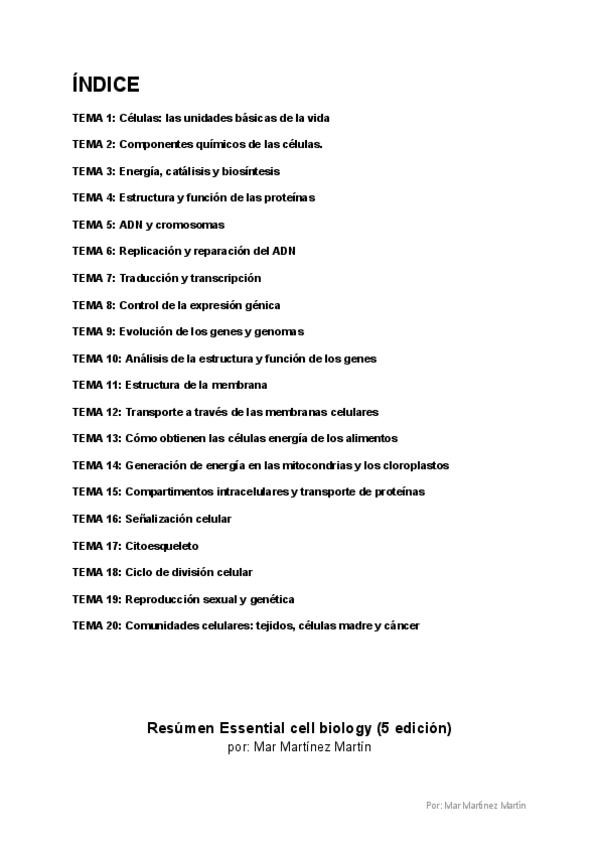 Apuntes realizados mediante el libro Essential Cell Biology y las diapositivas de clase de la asignatura Biología Celular, de 1º de Medicina en la UCA.