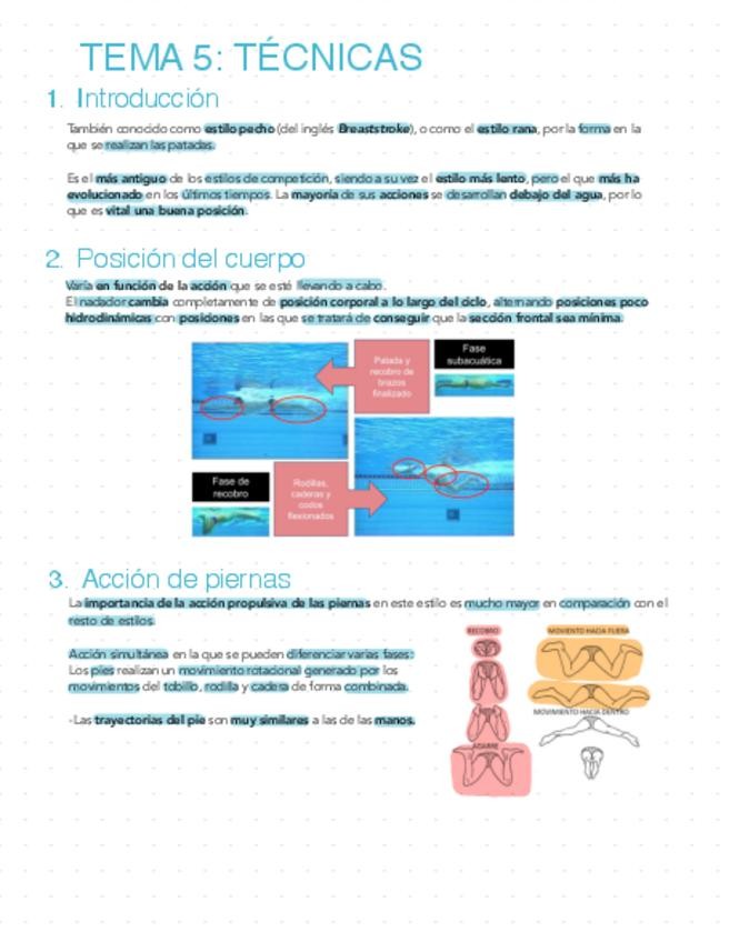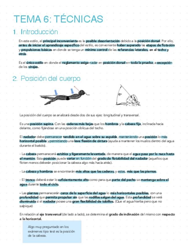 Resumen del tema 6 de Natación de la técnica de Espalda