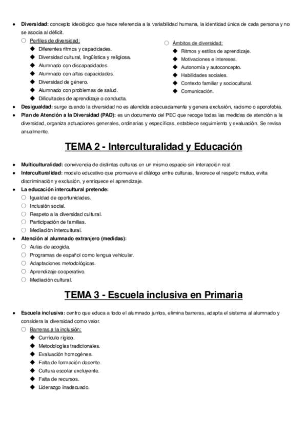 He publicado nuevos apuntes de 3º Atención a la Diversidad e Interculturalidad: Resumen-Diversidad.pdf