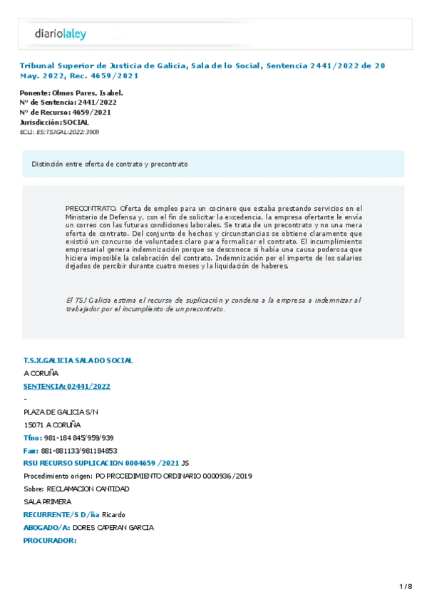 He publicado nuevos apuntes de 4º Intensificacion en Derecho Laboral: precontrato-STSJ-Galicia.pdf