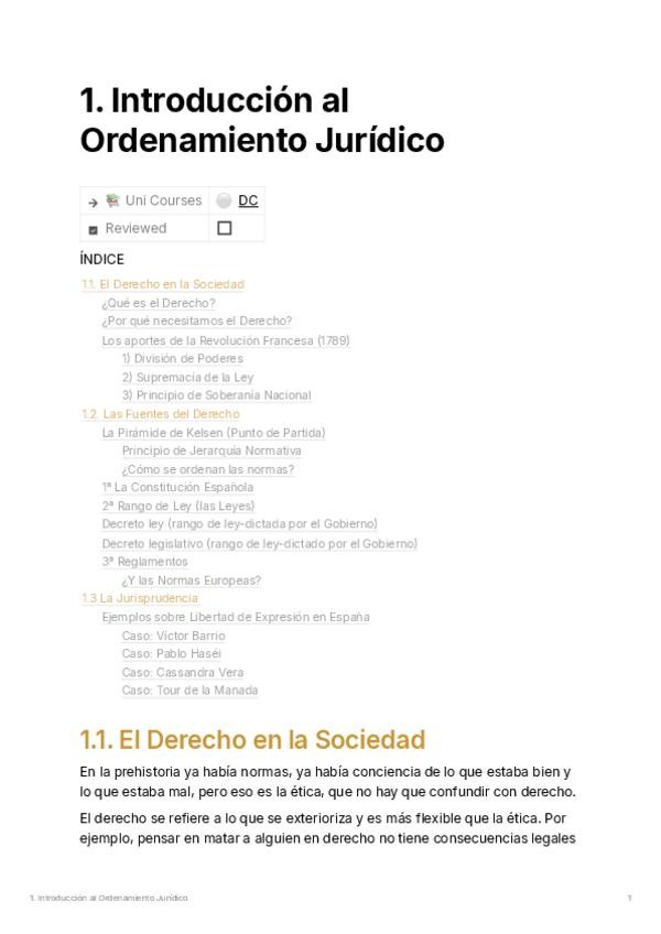 Apuntes detallados de la introducción al Derecho. Incluye conceptos fundamentales como la Pirámide de Kelsen , la división de poderes y las fuentes del derecho en España. Muy útil para entender la jerarquía normativa y el principio de seguridad jurídica.
